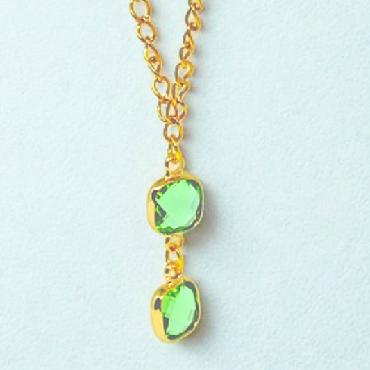 HALSKÆDE EMERALD. Guld, belagt rustfrit stål, krystal, minimalistisk. Kvinde. Håndlavet i Danmark