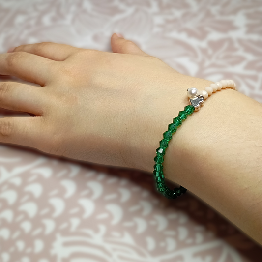 ARMBÅND ELIZA. Sølv rustfrit stål, krystal og porcelain pearls. Kvinde. Håndlavet