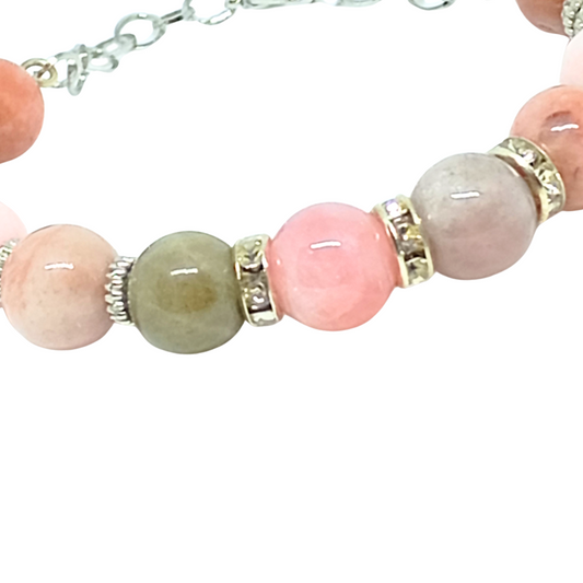 BRACELET SAND - Silver, stainless steel, natural alexa stone, charms with crystal. Women. Handmade