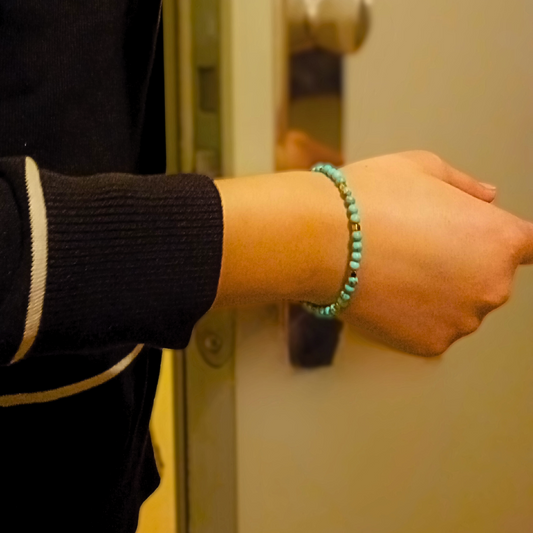 BRACELET JAZMINE - Gold, stainless steel, natural turquoise stone. Women. Handmade