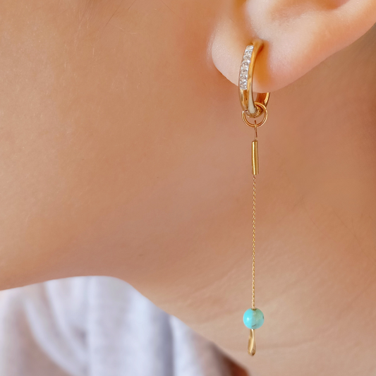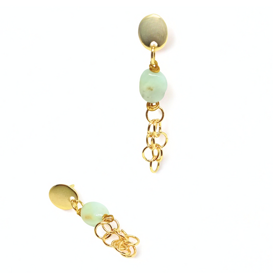 EARRINGS AMAZONIT. Gold, stainless steel, natural amazonite. Women. Handmade in Denmark