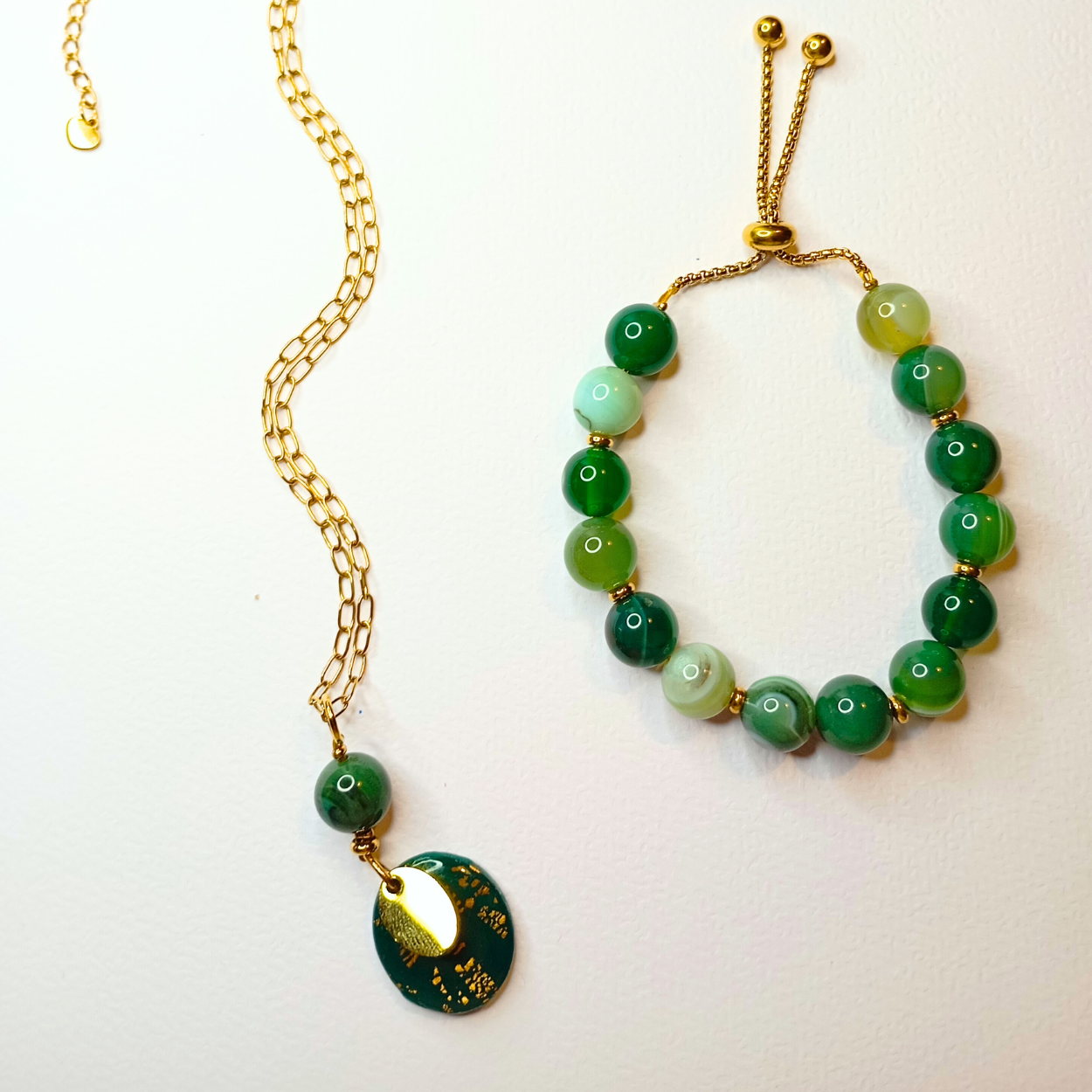 - SKADI-halskæde – et feminint og roligt design med naturlig sten, der tilfører smykket dybde og karakter